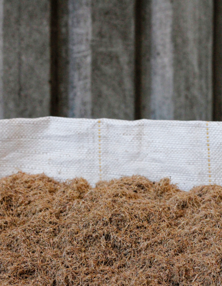 La fibra seca pasa por dos fases de molienda y separación de polvos finos.